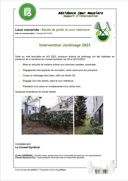 Suite au vote de la dernière AG vous pourrez trouver sur l'image ci-contre les détails de la prestation effectuée dans la résidence.